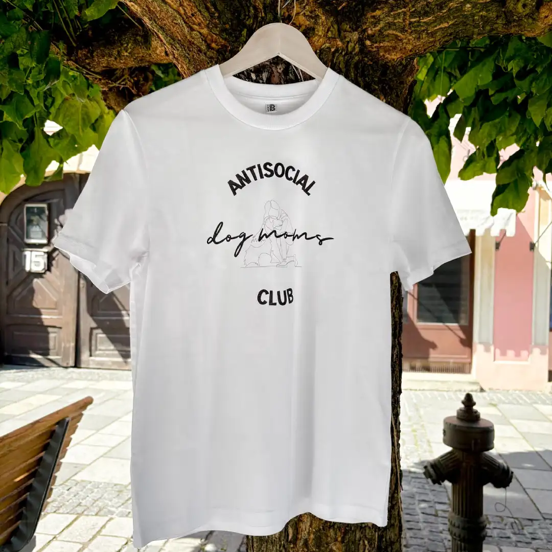 - „Antisocial dog mom’s club“ dizajn tiskan je na Stanley/Stella majicama belgijskog proizvođača koji je posvećen proizvodnji kvalitetne ekološke odjeće s poštovanjem prema ljudima koji ih izrađuju i prirodi