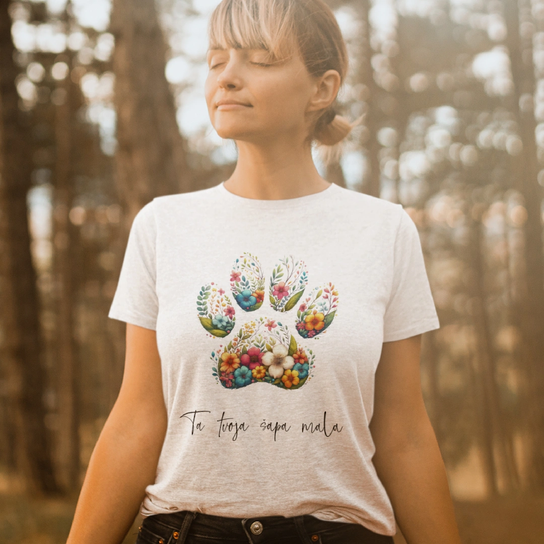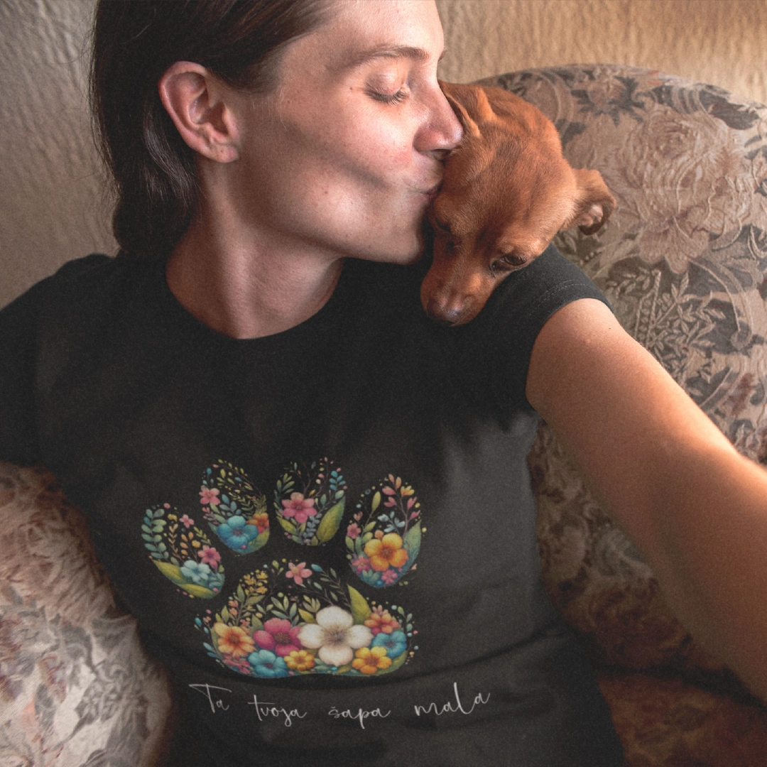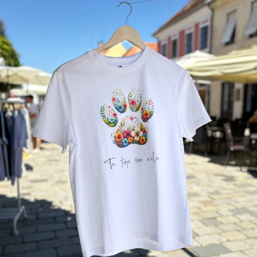 - „Ta tvoja šapa mala“ dizajn tiskan je na Stanley/Stella majicama belgijskog proizvođača koji je posvećen proizvodnji kvalitetne ekološke odjeće s poštovanjem prema ljudima koji ih izrađuju i prirodi